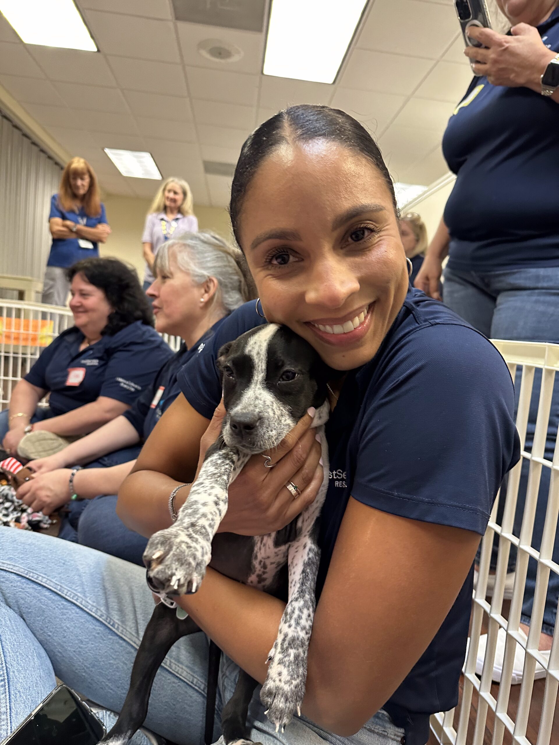 During their recent volunteer day, the team prepared treats, built scratchers for the cattery, and power-washed crates to support the staff and animals in their care. The afternoon ended with play time, where associates met the most well-behaved pups waiting for adoption. One lucky dog found her forever home with our associate Melanie Terrel, who adopted her new pup, Koda!
